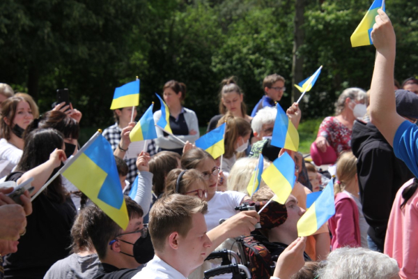Zum Finale am dritten Tag setzte die gesamte Schulgemeinde ein starkes Zeichen. "Imagine all the people livin´ life in peace" - "Stell dir vor, alle Menschen leben in Frieden": Das weltbekannte Lied von John Lennon, präsentiert von der Schülerband unter Leitung von Musiklehrerin Beate Hesse, bildete den Abschluss der Kulturwoche an der Johann-Peter-Schäfer-Schule (Förderschwerpunkt Sehen). Bei angenehmen Frühlingstemperaturen hatten sich Schüler und Personal auf dem Schulhof versammelt und sangen die Friedenshymne mit, viele von ihnen schwenkten kleine Fahnen in den Landesfarben der Ukraine, um so angesichts des Angriffskriegs Russlands ihr Mitgefühl und ihre Unterstützung auszudrücken. Doch die Einrichtung belässt es nicht bei bei symbolischen Statements. Auf Basis des Kontakts zu einer Blinden- und Sehbehindertenschule in Charkiw wurden im März auf dem Gelände, in einer ehemaligen Wohngruppe des Internats und einer früheren Hausmeisterwohnung, mehrere Flüchtlingsfamilien aufgenommen. Die fünf Kinder besuchen inzwischen auch den Unterricht. "Das Engagement der Mitarbeiter für die Familien ist überwältigend. Es gab viele Sach- und Kleiderspenden, das Ganze war sehr gut organisiert. Außerdem unterstützen Kollegen bei Behörden- und Arztgängen oder beim Einkaufen. Dass einige von ihnen Russischkenntnisse haben, hilft dabei natürlich ungemein. Was wir tun können, machen wir sehr gerne", sagt Schulleiterin Verena Trebels, die sich über eine insgesamt sehr gelungene Kulturwoche freut: "Es ist immer wieder einfach schön zu sehen, wie einfallsreich unsere Schüler sind, wie sie die Musikstücke, Gedichte, Kunstprojekte und vieles mehr lange mit großem Einsatz vorbereiten, einstudieren und dann toll präsentieren." Zwei der drei Tage galt die Aufmerksamkeit den zahlreichen Ausstellungen, beispielsweise zum italienischen Komponisten Antonio Vivaldi und zum Pop-Art-Künstler Keith Haring. Detailreich nachgebaute "Europäische Brücken", "Wunderschön!" mit zahlreichen Materialien gestaltete Gesichter, "Farbcollagen" zu den Skylines von (Fantasie)Städten und das Thema "Inspiriert von großen Künstlern" rundeten das bunte Programm ab. Am Mittwoch folgten die so genannten Bühnenauftritte, die in den Jahren vor der Corona-Pandemie in der pickepacke gefüllten Aula auf der stattgefunden hatten, diesmal aber aufgrund der nach wie vor schwierigen Planbarkeit von Schulveranstaltungen im Vorfeld per Video oder Audiodatei aufgezeichnet und dann in den Klassen auf dem Schulnetzwerk "Iserv" angeschaut beziehungsweise angehört wurden. Darunter befanden sich kurzweilige Stücke wie das Märchen "Peter und der Wolf" und der Tanzsong "Jerusalema", aber auch ein Lied wie "S.O.S. und Alarm", das sich kritisch mit der Problematik der Umweltverschmutzung beschäftigte. Unterhaltsam und kreativ, darüber hinaus durchaus kritisch und Stellung beziehend in zentralen Fragen der Gegenwart und Zukunft - die Kulturwoche der Johann-Peter-Schäfer-Schule war in jeder Hinsicht ein voller Erfolg.
