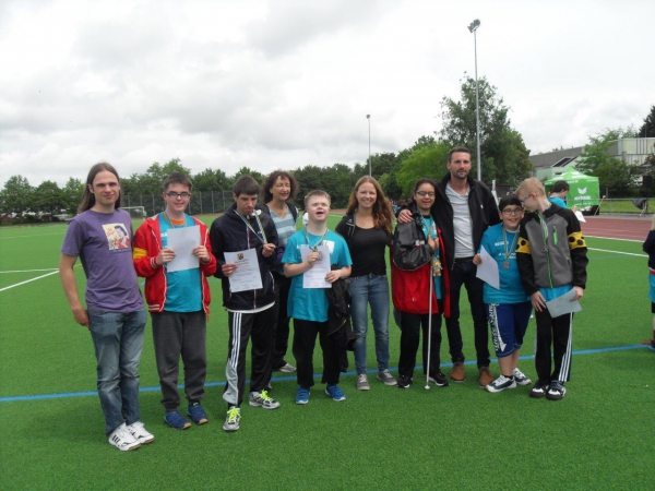 Bei den diesjährigen Landesjugendspielen für blinde, seh- und körperbehinderte Kinder und Jugendliche in Schulen und den Kinder- und Jugendgruppen des Behinderten- und Rehabilitationssportverbandes Rheinland-Pfalz nahmen am 14. Juni von unserer Schule 46 Schülerinnen und Schüler teil. Die Veranstaltung dient als Qualifikationswettkampf für Jugend trainiert für Paralympics. Die Friedberger traten in Nieder-Olm gegen 400 Kinder und Jugendliche anderer Schulen an. Trotz immer wieder einsetzender heftiger Regenschauer, bei denen der Wettkampf dann unterbrochen werden musste, schlugen sich unsere Schüler tapfer und brachten auch einige Medaillen mit nach Hause. Sie freuen sich schon auf eine Teilnahme im nächsten Jahr.